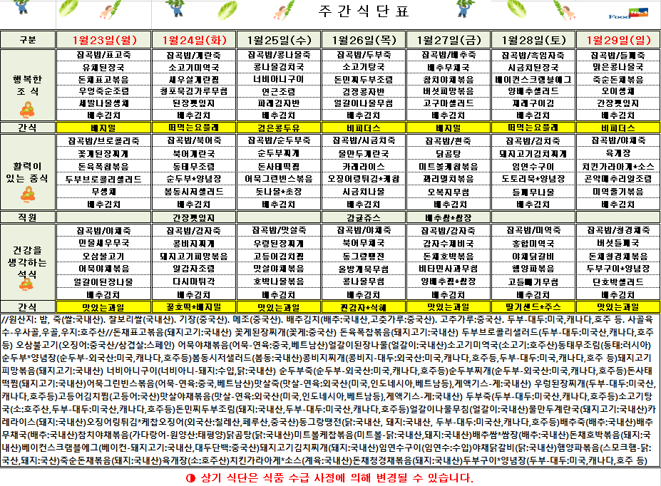1¿ù 4ÁÖÂ÷ ½Ä´ÜÇ¥(2023.1.23~2023.01.29)