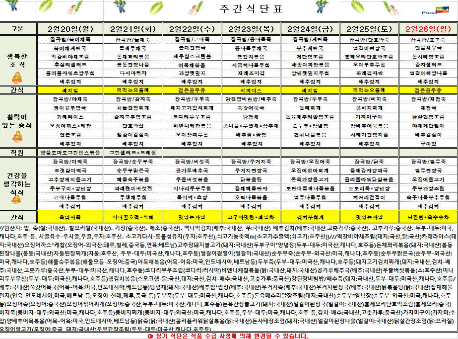 2¿ù 4ÁÖÂ÷ ½Ä´ÜÇ¥(2023.2.20~2023.02.26)