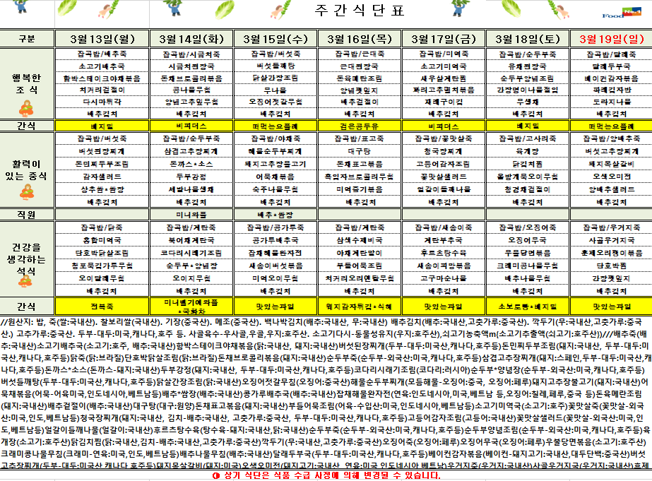 3¿ù 3ÁÖÂ÷ ½Ä´ÜÇ¥(2023.3.13~2023.03.19)