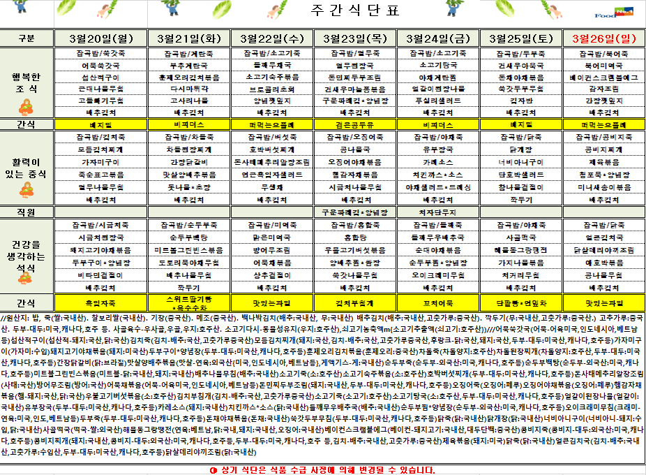 3¿ù 4ÁÖÂ÷ ½Ä´ÜÇ¥(2023.3.20~2023.03.26)