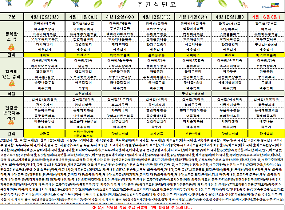 4¿ù 2ÁÖÂ÷ ½Ä´ÜÇ¥(2023.4.10~2023.4.16)