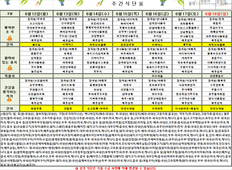 6¿ù 2ÁÖÂ÷ ½Ä´ÜÇ¥(2023.6.9~2023.6.18)
