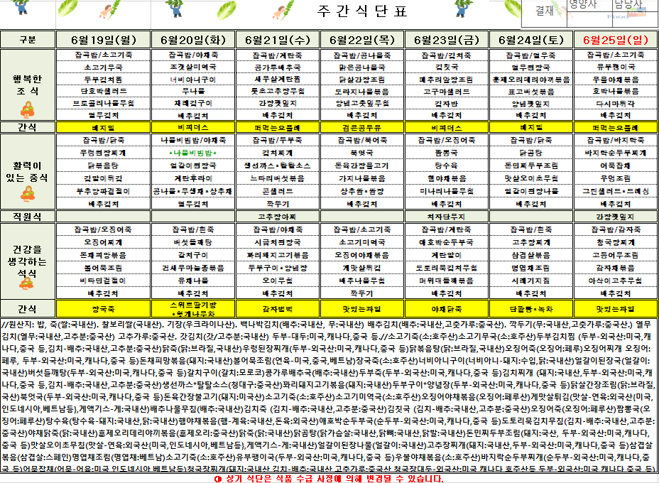 6¿ù 3ÁÖÂ÷ ½Ä´ÜÇ¥(2023.6.16~2023.6.25)