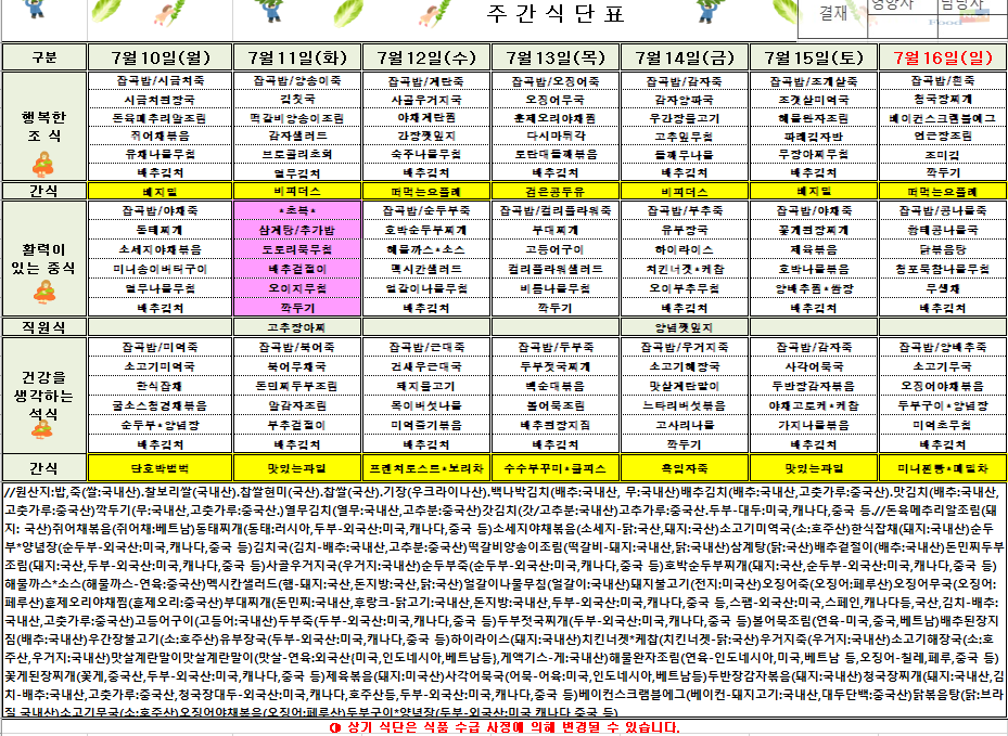 7¿ù 2ÁÖÂ÷ ½Ä´ÜÇ¥(2023.7.10~2023.7.16)