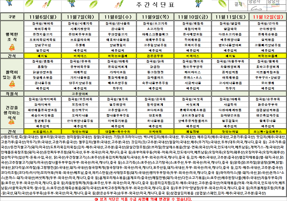11¿ù 2ÁÖÂ÷ ½Ä´ÜÇ¥(2023.11.06~2023.11.12)