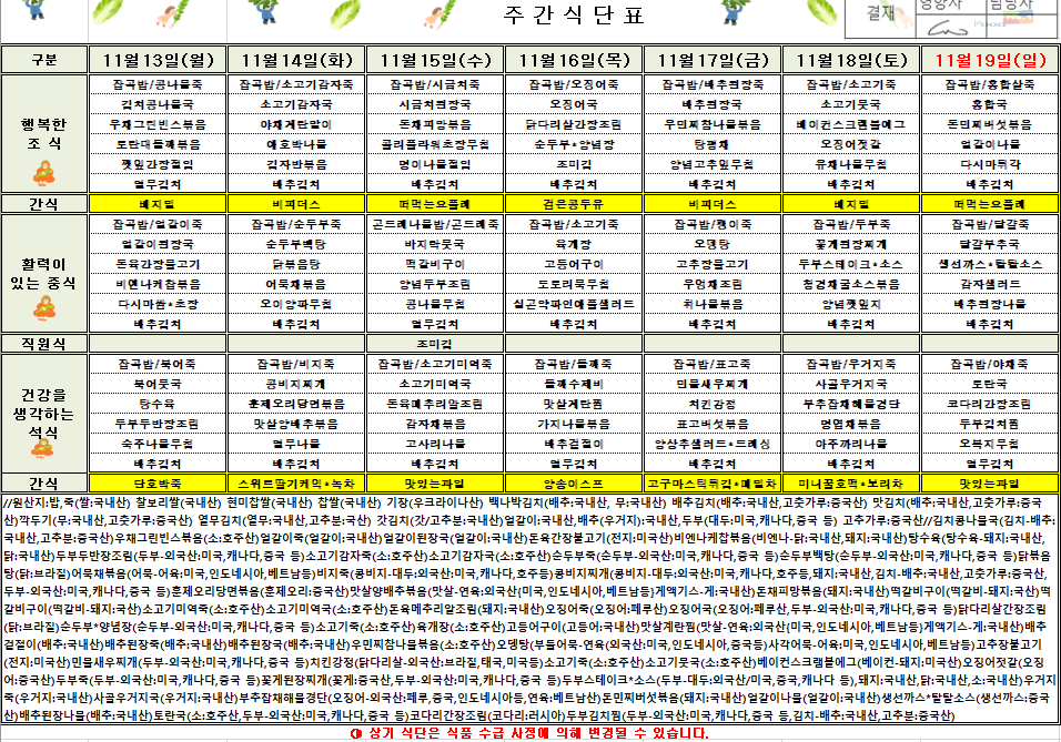 11¿ù 3ÁÖÂ÷ ½Ä´ÜÇ¥(2023.11.13~2023.11.19)