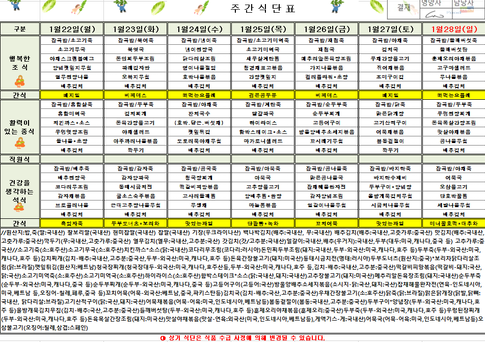 1¿ù 4ÁÖÂ÷ ½Ä´ÜÇ¥(2024.01.22~2024.01.28)