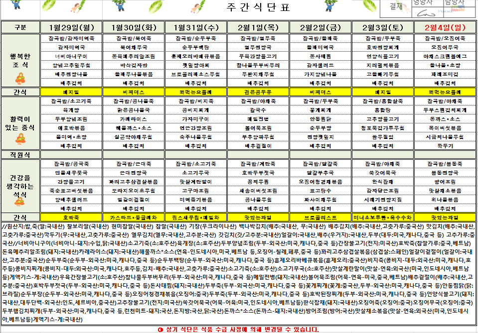 2¿ù 1ÁÖÂ÷ ½Ä´ÜÇ¥(2024.01.29~2024.02.04)