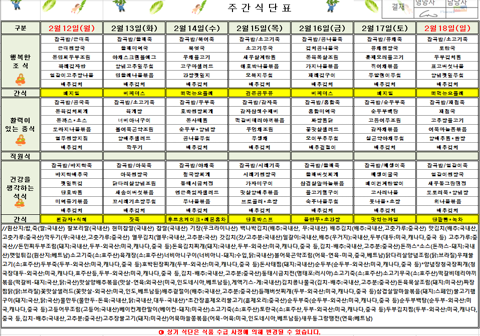2¿ù 3ÁÖÂ÷ ½Ä´ÜÇ¥(2024.02.12~2024.02.18)