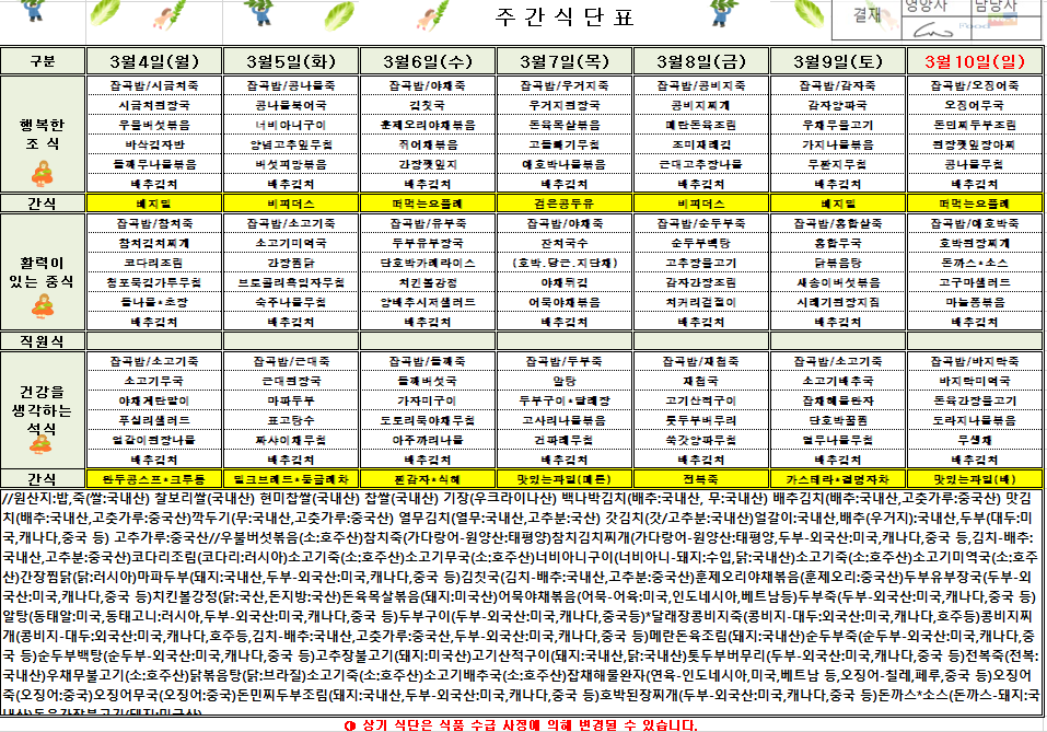 3¿ù 1ÁÖÂ÷ ½Ä´ÜÇ¥(2024.03.04~2024.03.10)