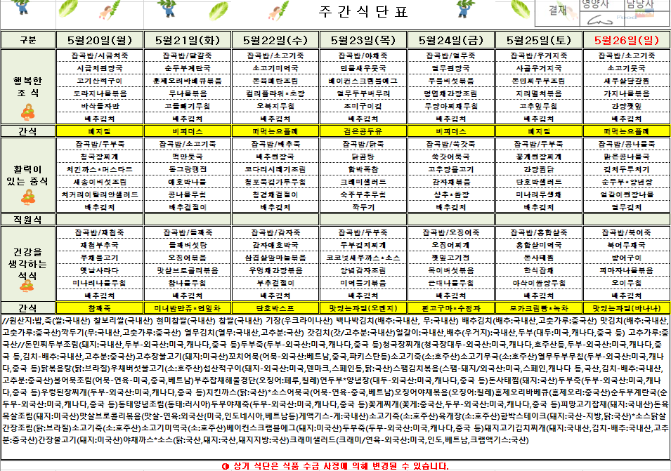 5¿ù 4ÁÖÂ÷ ½Ä´ÜÇ¥(2024.05.20~2024.05.26)