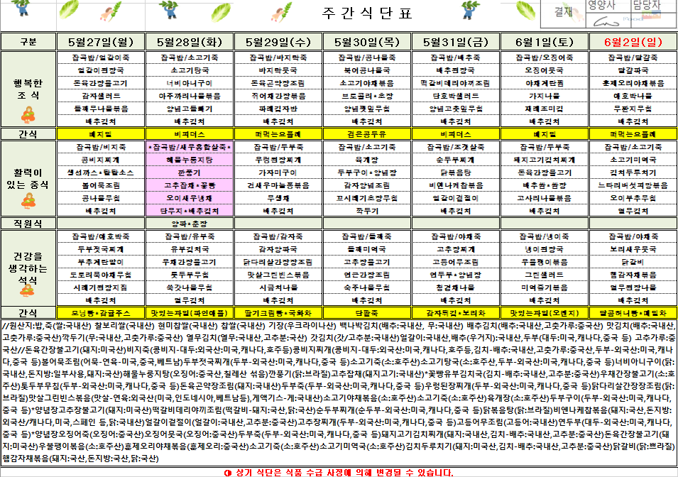 5¿ù 5ÁÖÂ÷ ½Ä´ÜÇ¥(2024.05.27~2024.06.02)