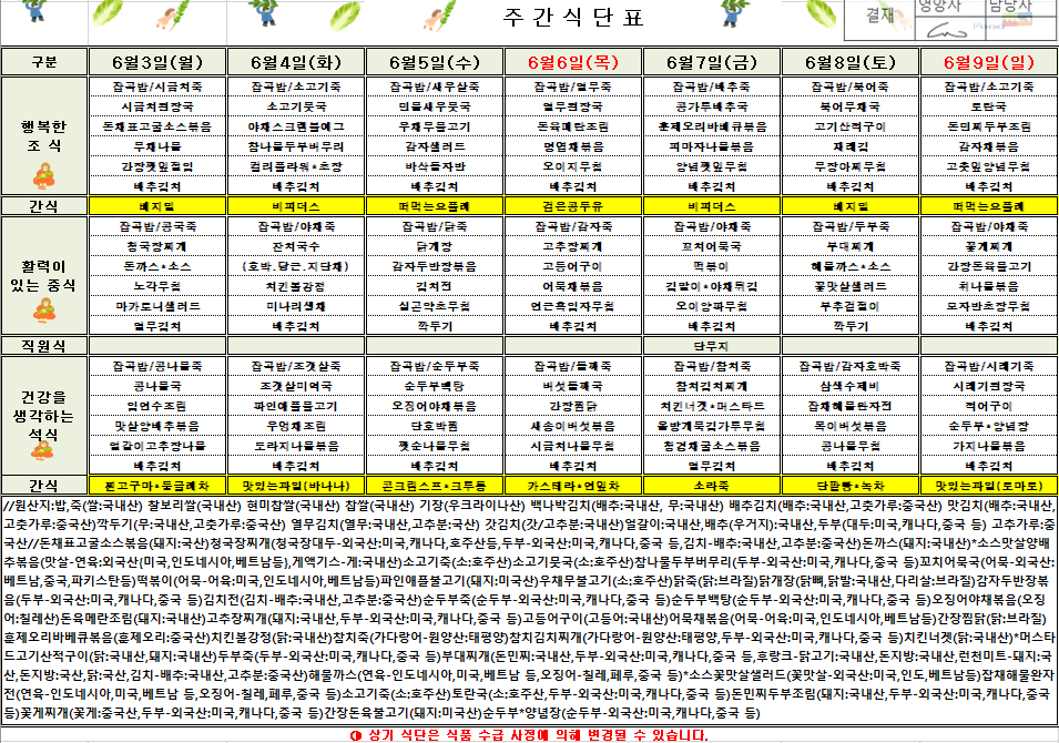 6¿ù 1ÁÖÂ÷ ½Ä´ÜÇ¥(2024.06.03~2024.06.09)