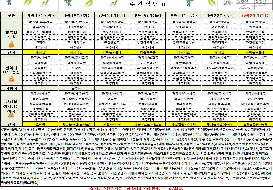 6¿ù 3ÁÖÂ÷ ½Ä´ÜÇ¥(2024.06.17~2024.06.23)