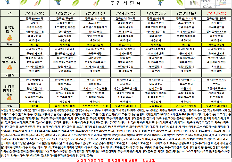 7¿ù 1ÁÖÂ÷ ½Ä´ÜÇ¥(2024.07.01~2024.07.07)