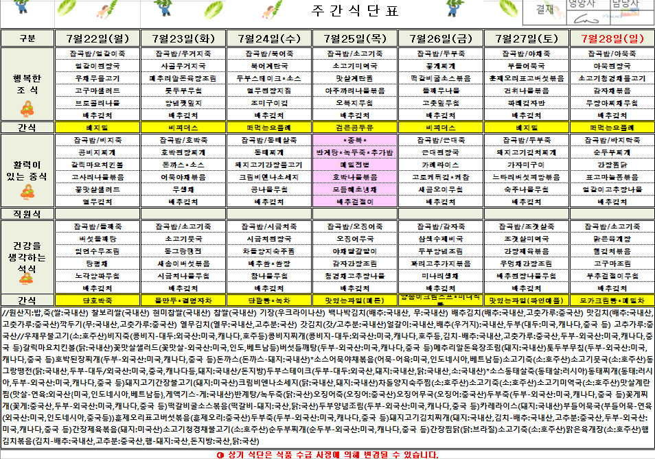 7¿ù 4ÁÖÂ÷ ½Ä´ÜÇ¥(2024.07.22~2024.07.28)