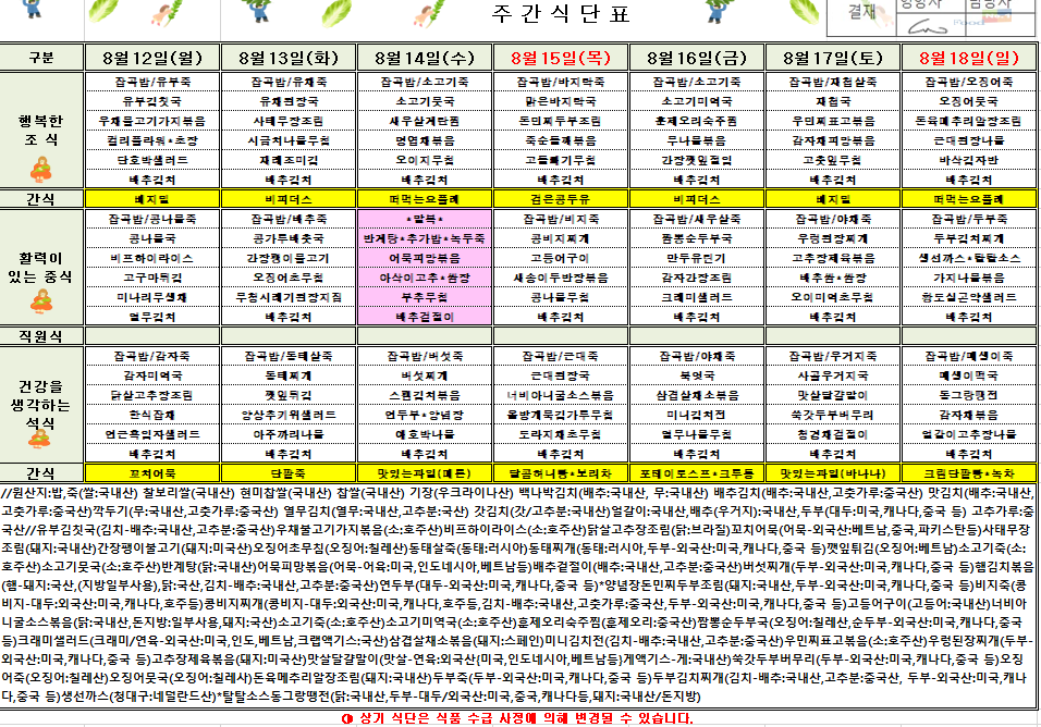 8¿ù 3ÁÖÂ÷ ½Ä´ÜÇ¥(2024.08.12~2024.08.18)