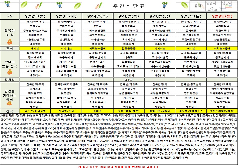 9¿ù 1ÁÖÂ÷ ½Ä´ÜÇ¥