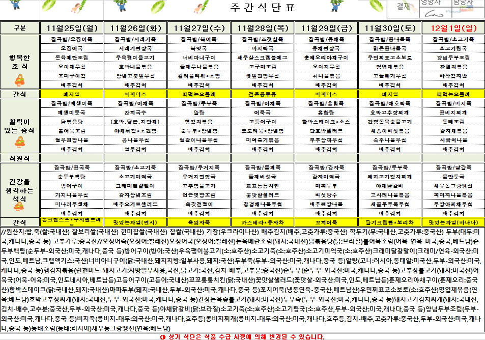 11¿ù 4ÁÖÂ÷ ½Ä´ÜÇ¥(2024.11.25~2024.12.01)