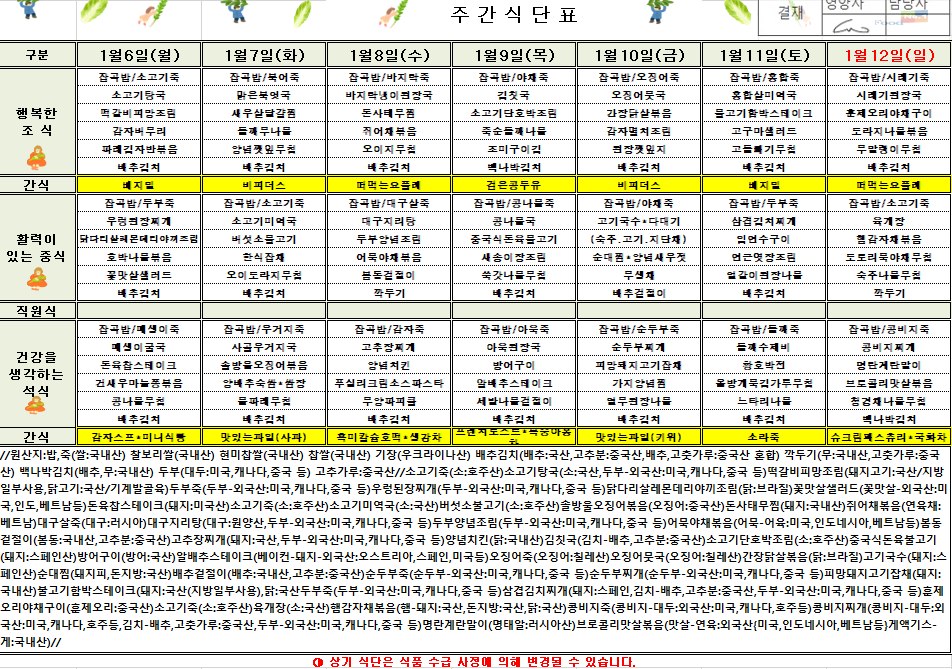 1¿ù 2ÁÖÂ÷ ½Ä´ÜÇ¥(2025.1.6~2025.1.12)