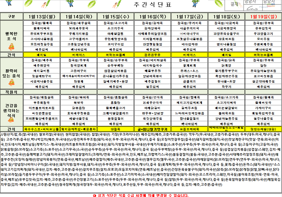 1¿ù 3ÁÖÂ÷ ½Ä´ÜÇ¥(2025.1.13~2025.1.19)
