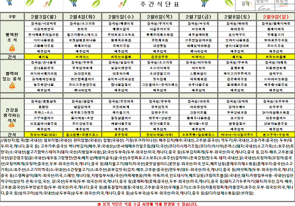 2¿ù 1ÁÖÂ÷ ½Ä´ÜÇ¥(2025.2.3~2025.2.9)
