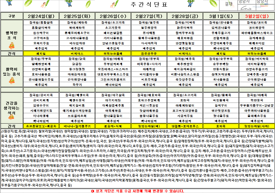 2¿ù 4ÁÖÂ÷ ½Ä´ÜÇ¥(2025.2.24~2025.3.2)
