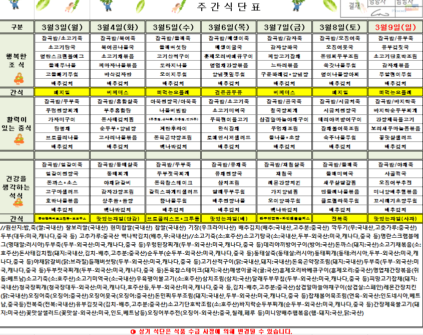 3¿ù 1ÁÖÂ÷ ½Ä´ÜÇ¥(2025.3.3~2025.3.9)