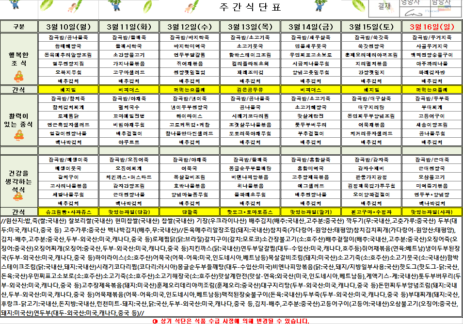 3¿ù 2ÁÖÂ÷ ½Ä´ÜÇ¥(2025.3.10~2025.3.16)