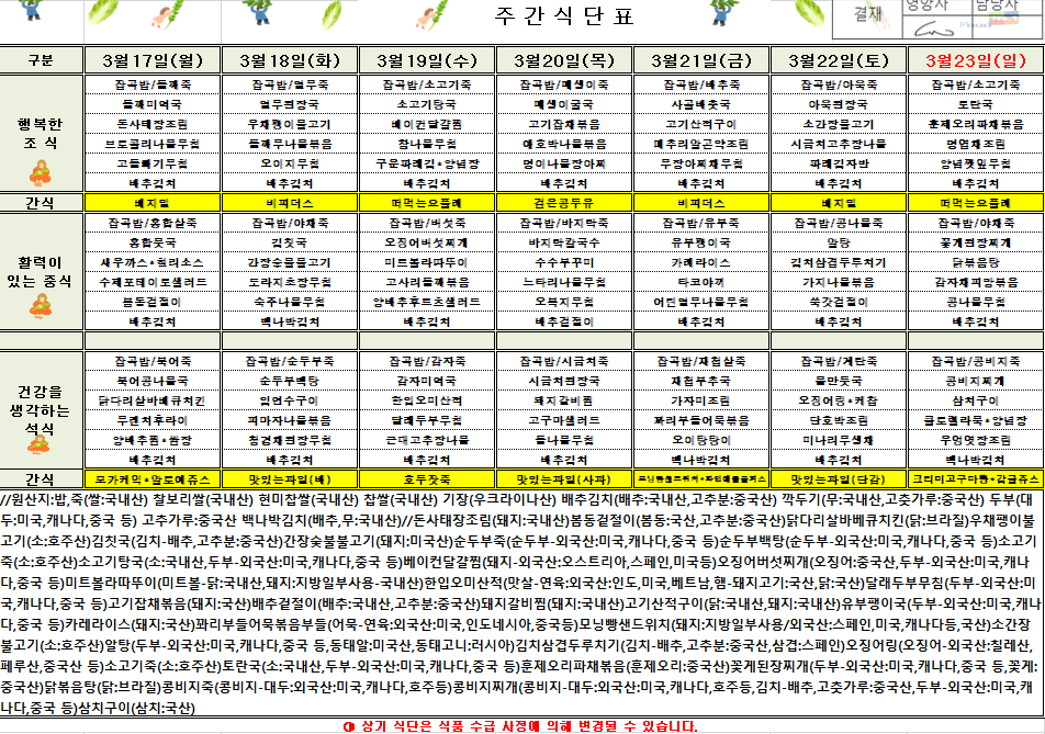 3¿ù 3ÁÖÂ÷ ½Ä´ÜÇ¥(2025.3.17~2025.3.23)