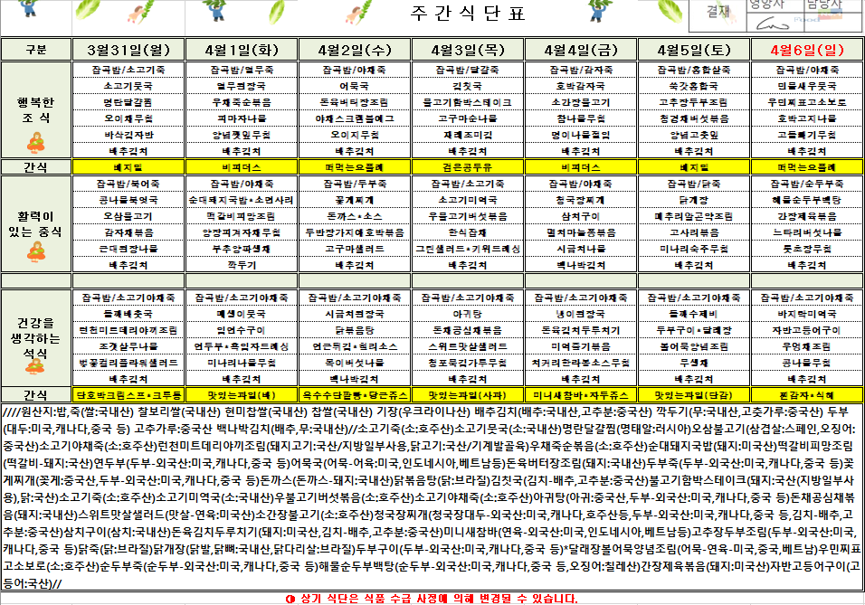 4¿ù 1ÁÖÂ÷ ½Ä´ÜÇ¥(2025.3.31~2025.4.6)