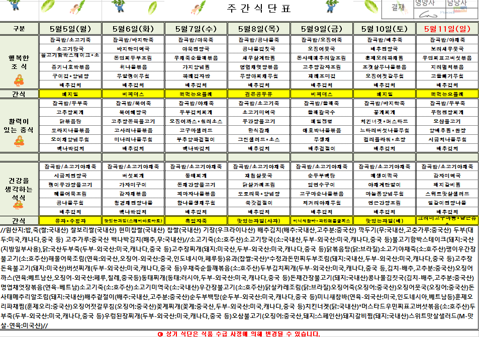 5¿ù 2ÁÖÂ÷ ½Ä´ÜÇ¥(2025.5.5~2025.5.11)
