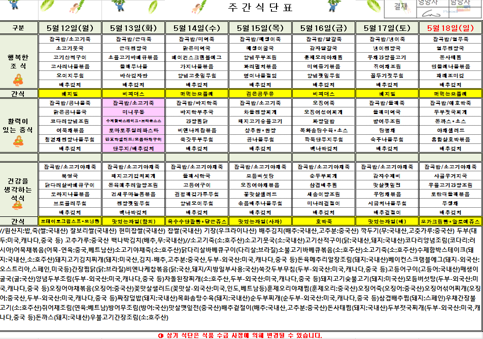 5¿ù 3ÁÖÂ÷ ½Ä´ÜÇ¥(2025.5.12~2025.5.18)