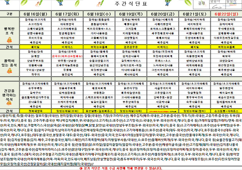 6¿ù 3ÁÖÂ÷ ½Ä´ÜÇ¥(2025.6.16~2025.6.22)