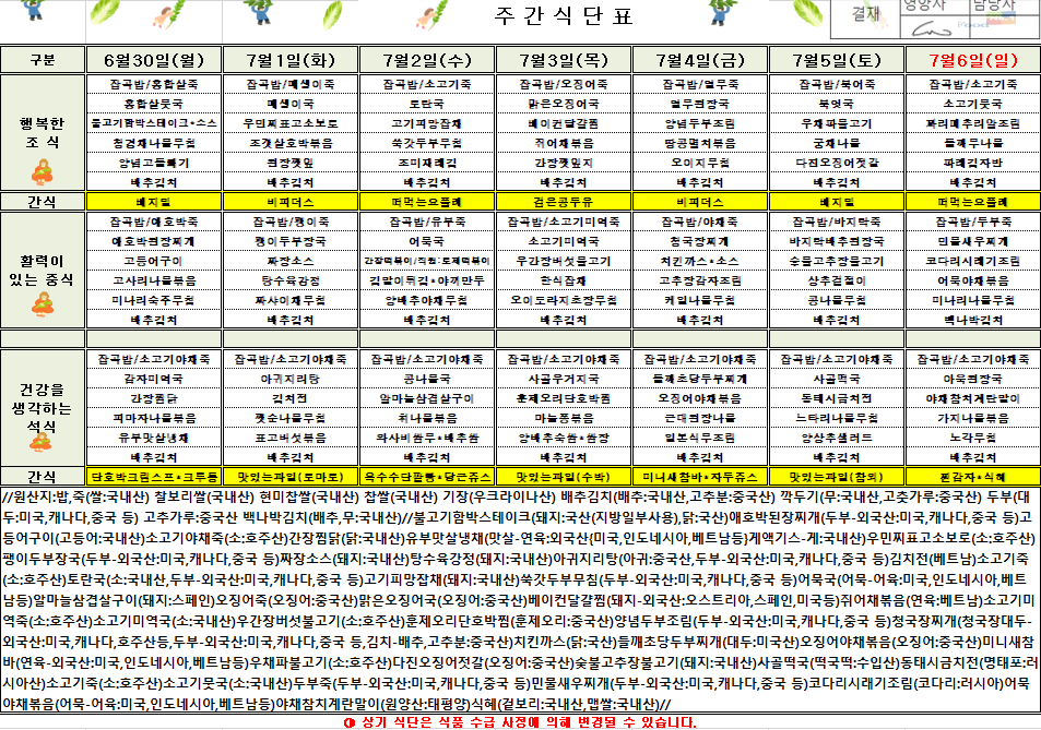 7¿ù 1ÁÖÂ÷ ½Ä´ÜÇ¥(2025.6.30~2025.7.6)