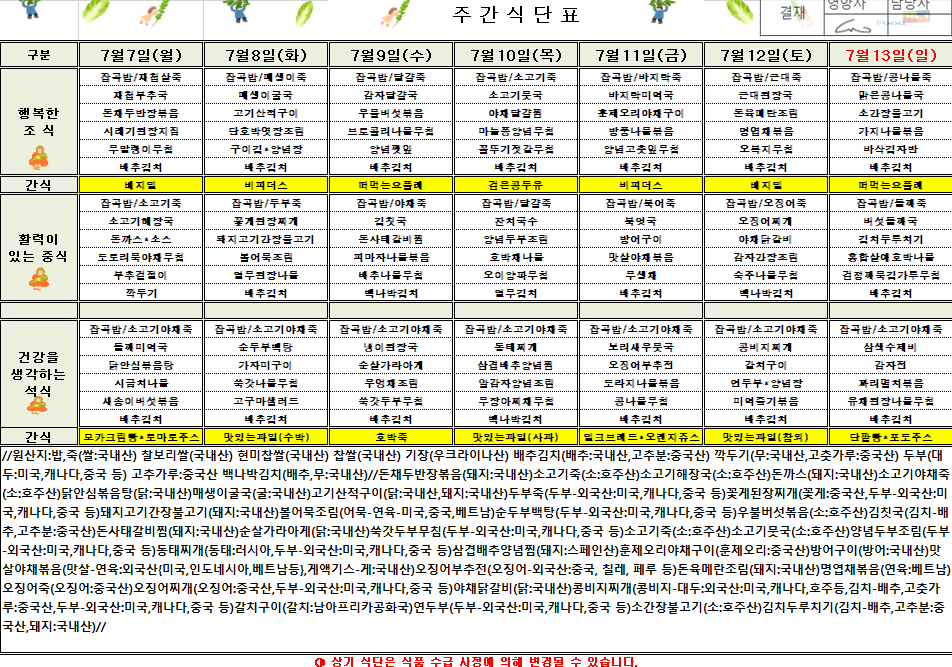 7¿ù 2ÁÖÂ÷ ½Ä´ÜÇ¥(2025.7.7~2025.7.13)