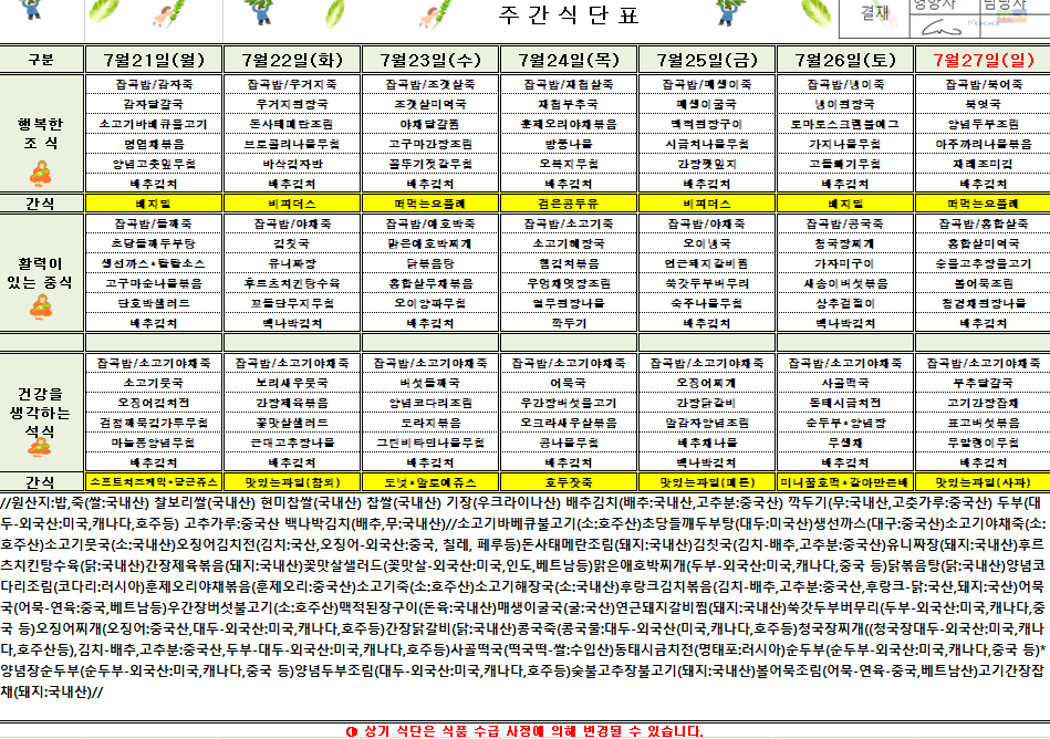 7¿ù 4ÁÖÂ÷ ½Ä´ÜÇ¥(2025.7.21~2025.7.27)