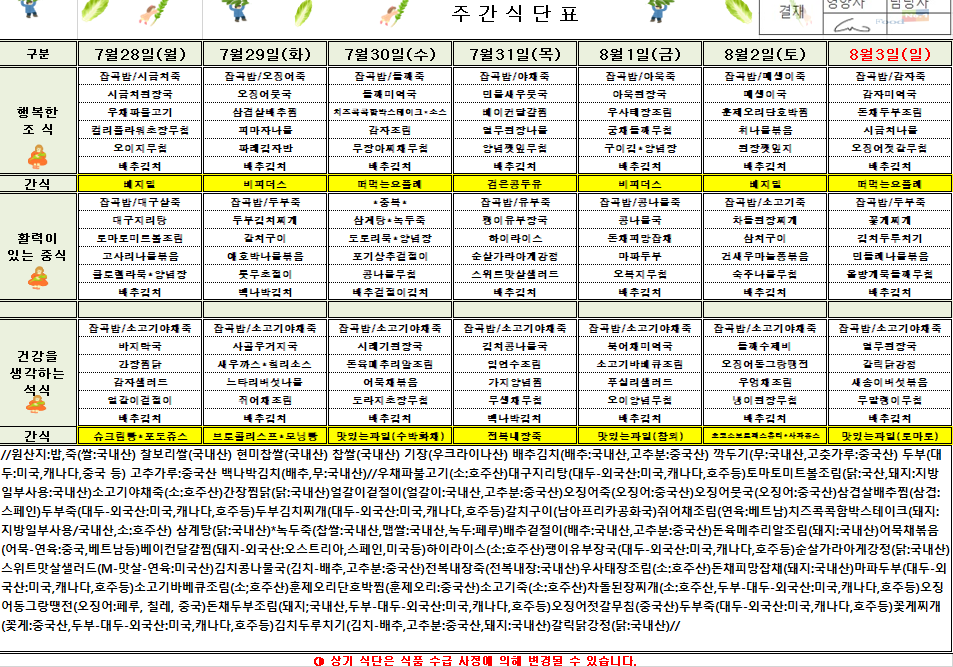 7¿ù 5ÁÖÂ÷ ½Ä´ÜÇ¥(2025.7.28~2025.8.3)