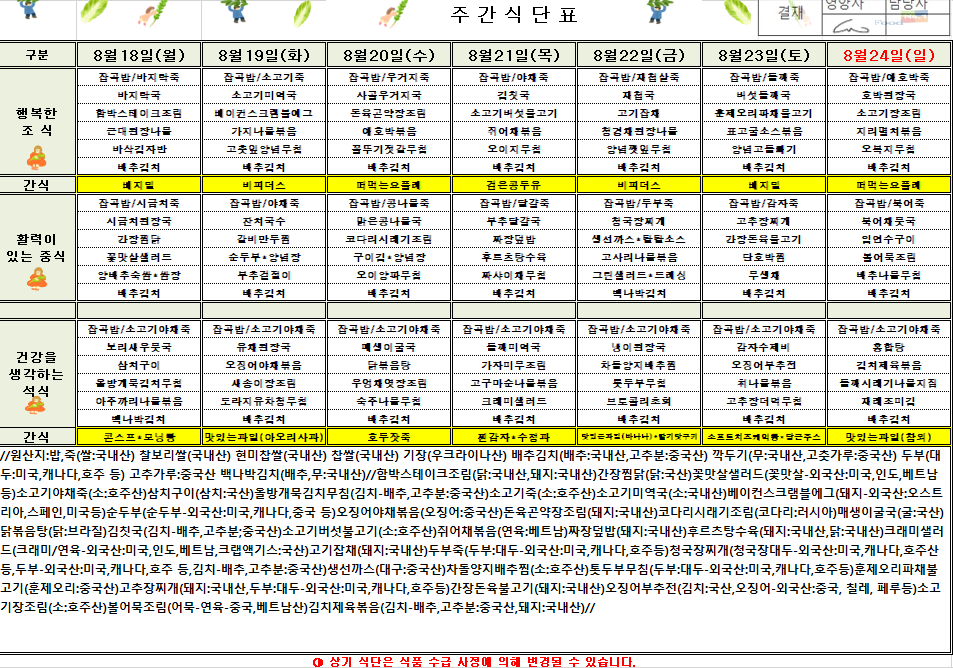 8¿ù 3ÁÖÂ÷ ½Ä´ÜÇ¥(2025.8.18~2025.8.24)
