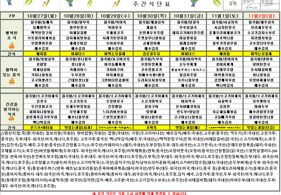 10¿ù 5ÁÖÂ÷ ½Ä´ÜÇ¥(2025.10.27~2025.11.2)