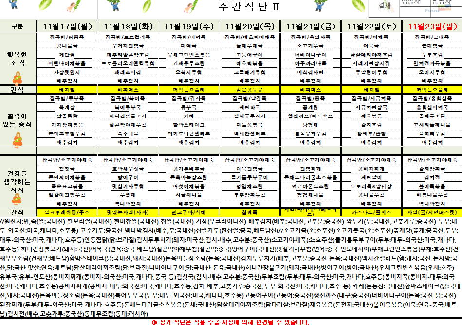 11¿ù 3ÁÖÂ÷ ½Ä´ÜÇ¥(2025.11.17~2025.11.23)