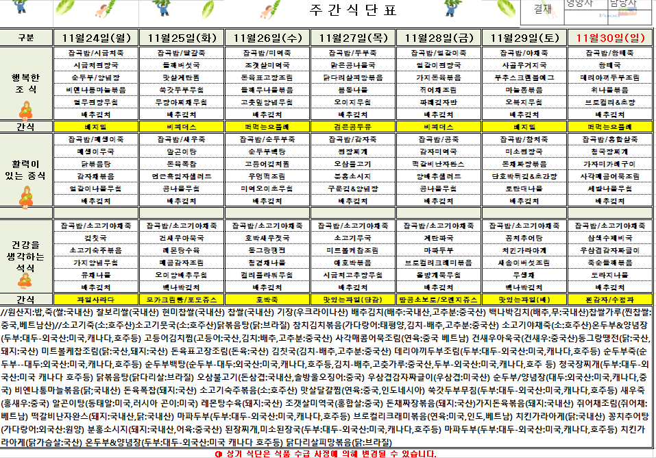 11¿ù 4ÁÖÂ÷ ½Ä´ÜÇ¥(2025.11.24~2025.11.30)