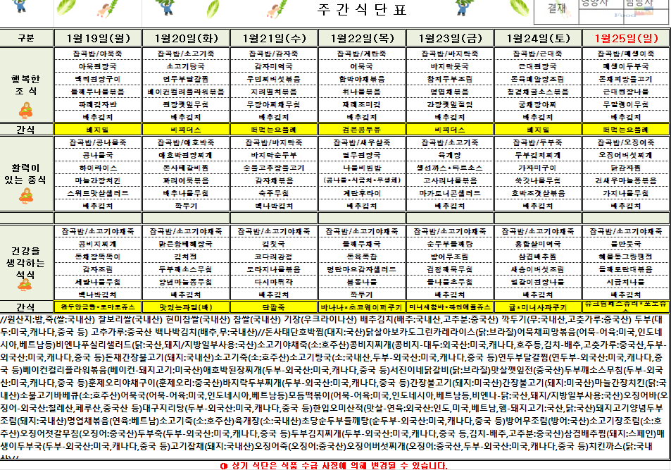 1¿ù 4ÁÖÂ÷ ½Ä´ÜÇ¥(2025.1.19~2026.1.25)