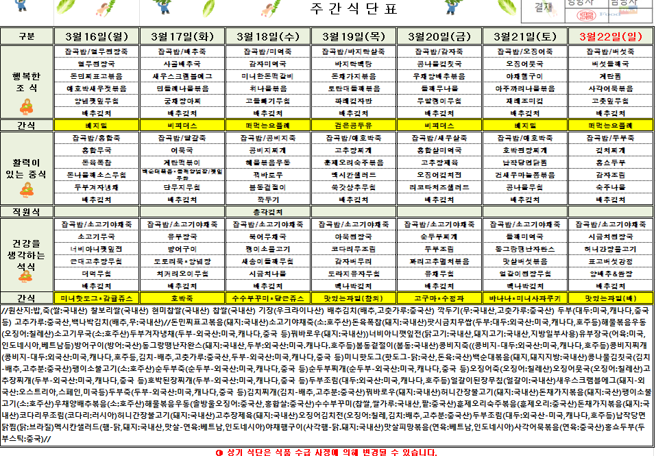 3¿ù 3ÁÖÂ÷ ½Ä´ÜÇ¥(2025.3.17~2026.3.24)