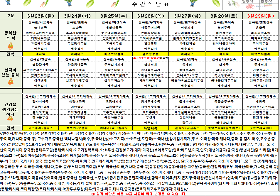 3¿ù 4ÁÖÂ÷ ½Ä´ÜÇ¥(2025.3.25~2026.3.31)