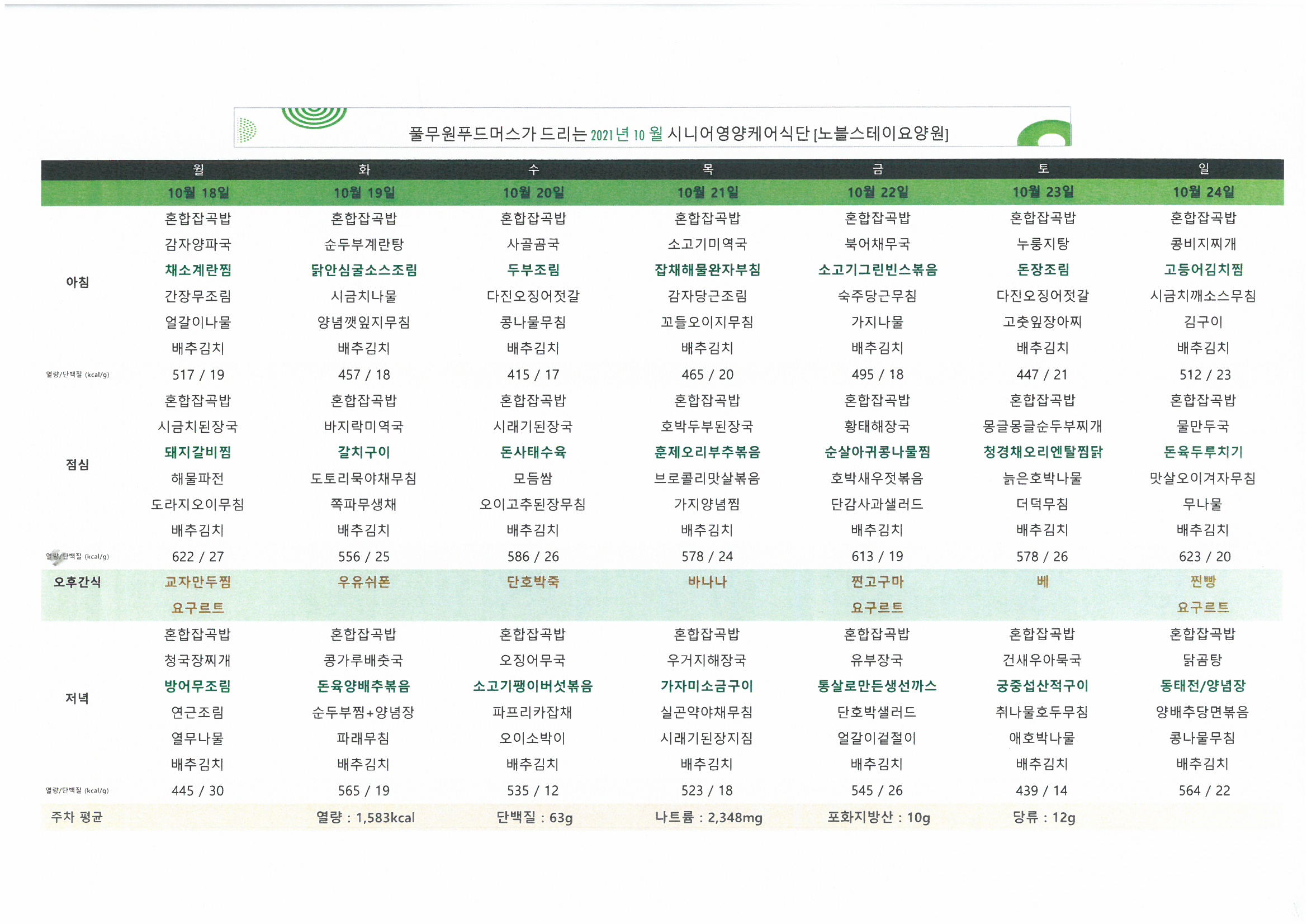 10¿ù 3ÁÖÂ÷ ½Ä´ÜÇ¥ÀÔ´Ï´Ù.