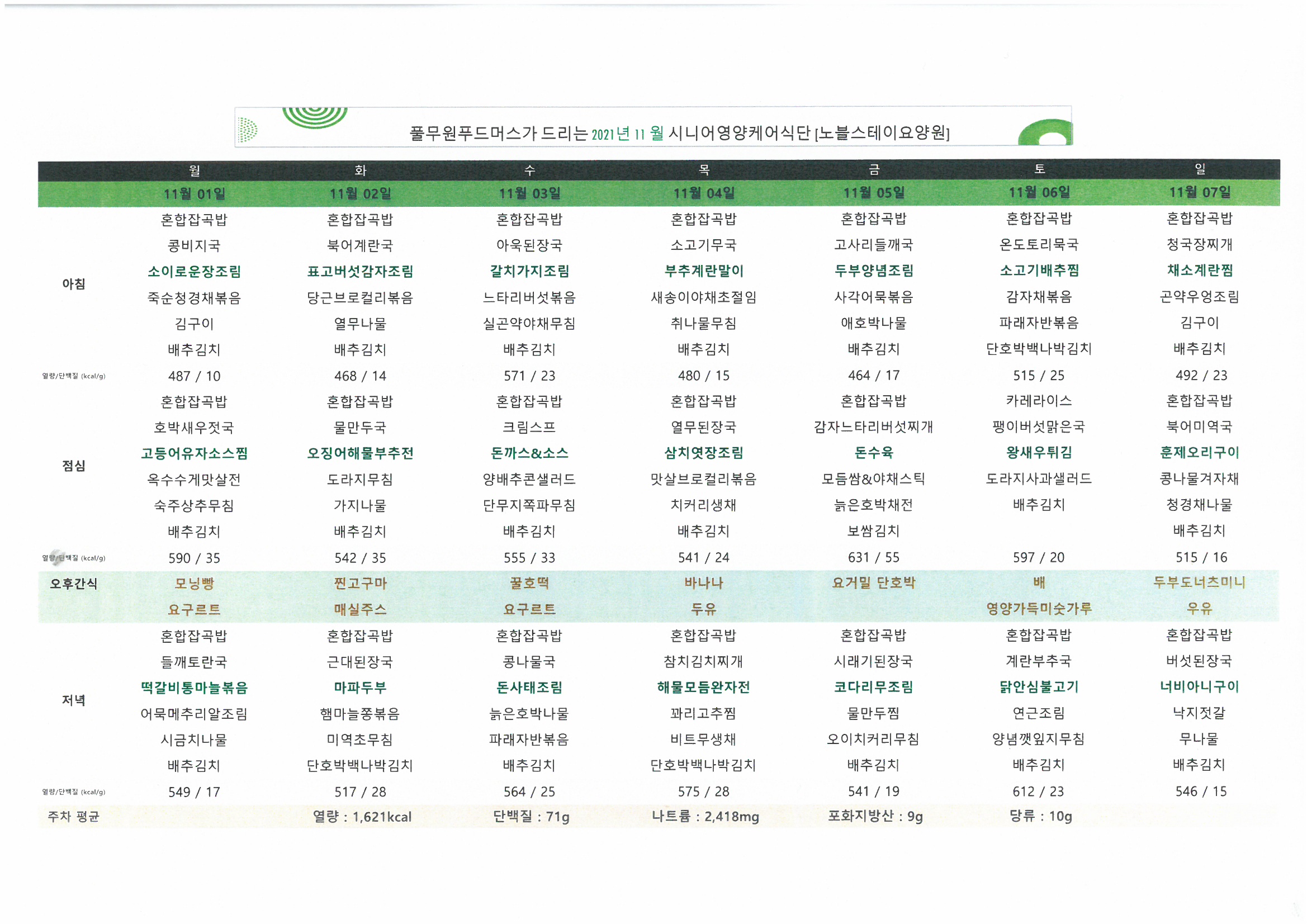 11¿ù 1ÁÖÂ÷ ½Ä´ÜÇ¥ÀÔ´Ï´Ù.