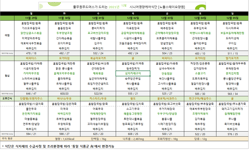 12¿ù 1ÁÖÂ÷ ½Ä´ÜÇ¥ÀÔ´Ï´Ù.