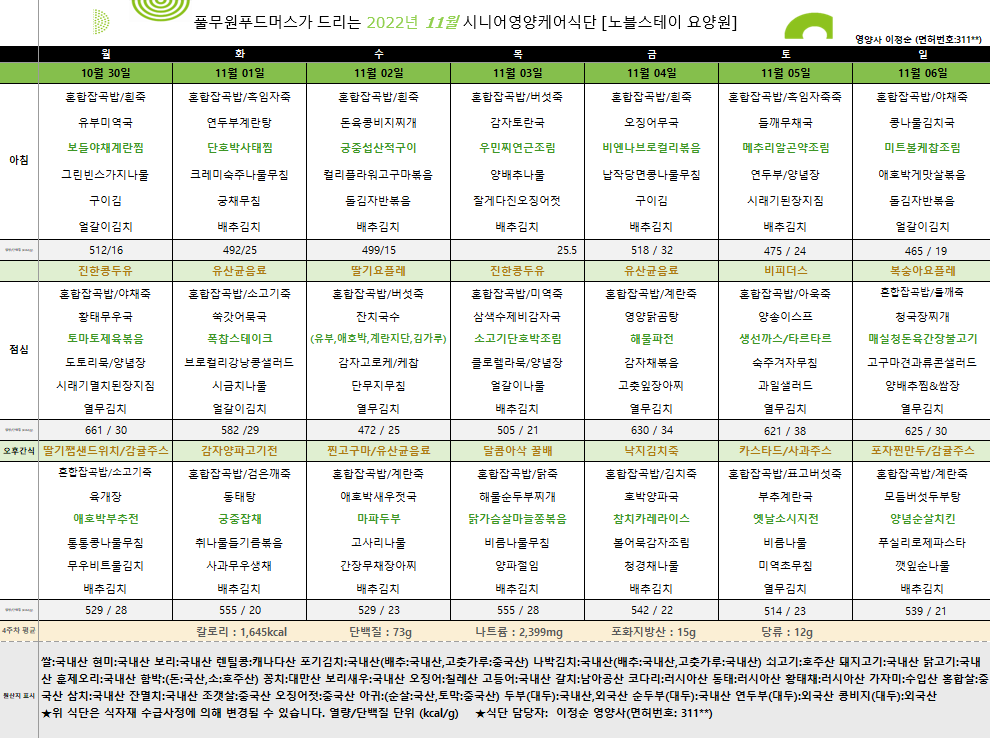 11¿ù 1ÁÖÂ÷ ½Ä´ÜÇ¥(2022.10.30~2022.11.06)