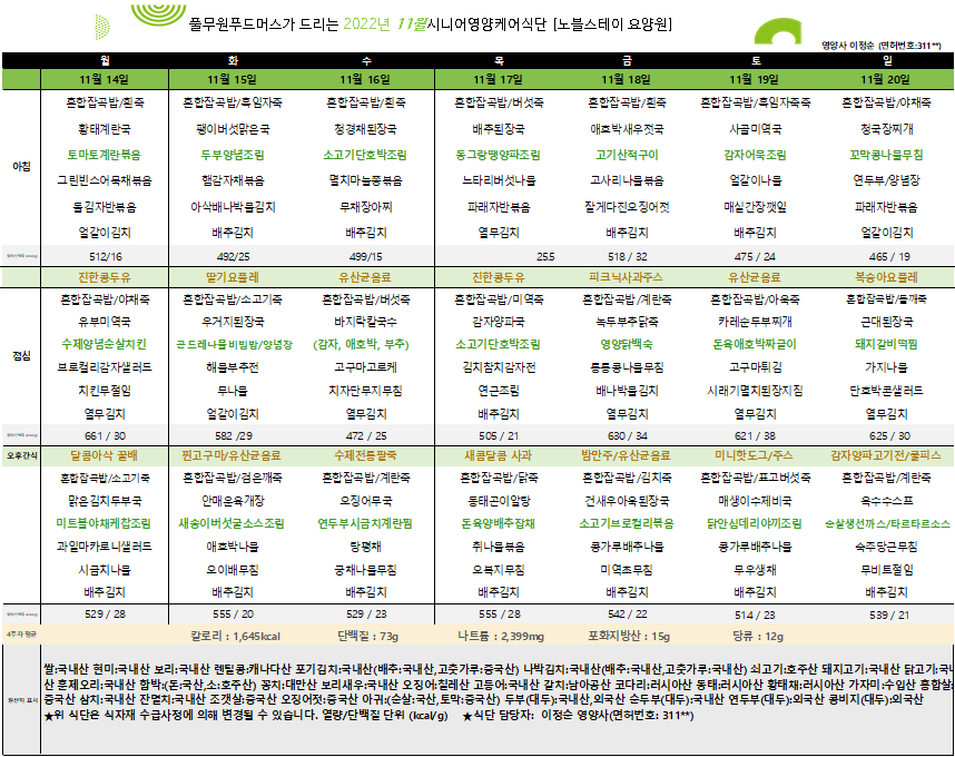 11¿ù 3ÁÖÂ÷ ½Ä´ÜÇ¥(2022.11.14~2022.11.20)